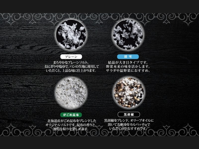 豊かな自然が残る北の大地で育まれた、宝石のように美しい塩です。