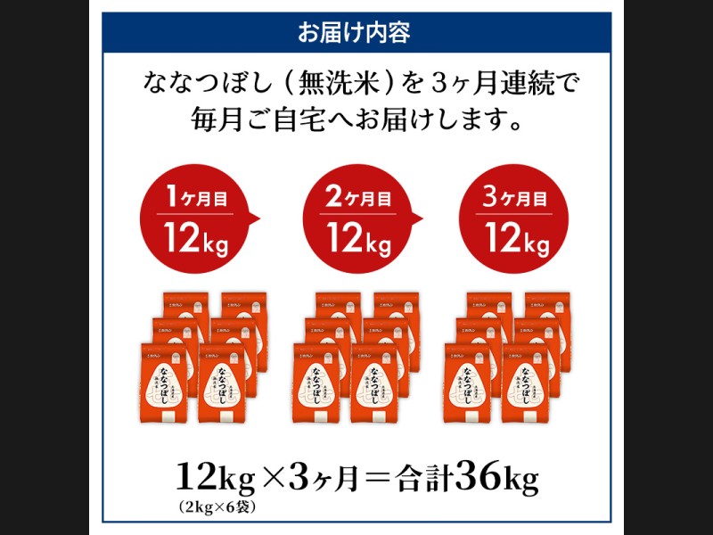 サイズ: ホクレン喜ななつぼし無洗米12kg(2kg×6袋)を3ヵ月間お届けいたします