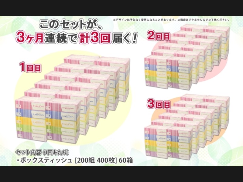 ブライティアソフト BOXティッシュ 計60箱×全3回の定期便です。