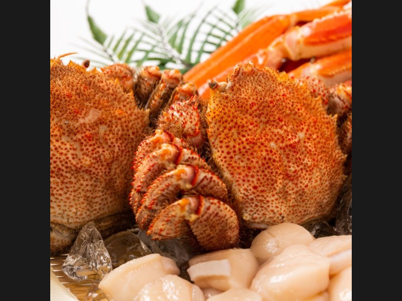 流氷がはぐくむ豊かな海で、毛ガニ・ズワイガニ・タラバガニの三大ガニのほか、ホタテ、鮭などの豊富な魚介類を味わえます。