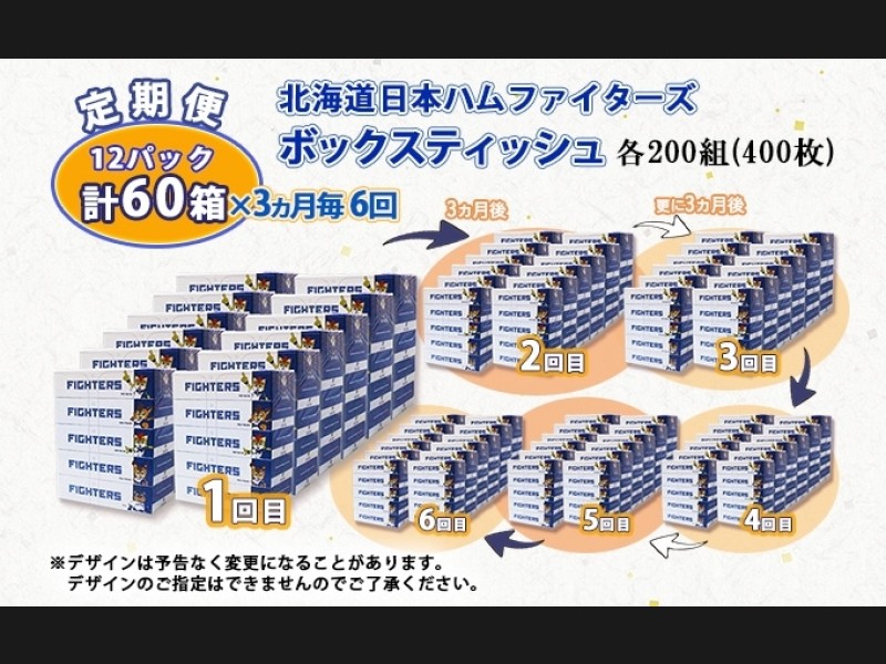 3ヵ月毎 全6回 北海道日本ハムファイターズ ボックスティッシュ 200組 60箱 日本製 まとめ買い リサイ...