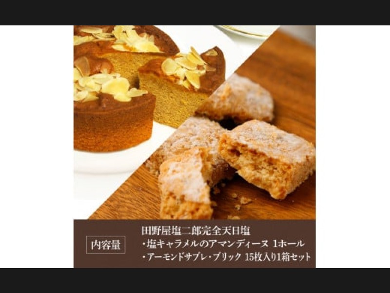 ★田野屋塩二郎完全天日塩★塩キャラメルのアマンディーヌ(ホール約12cm)1ホール+アーモンドサブレ・ブ...