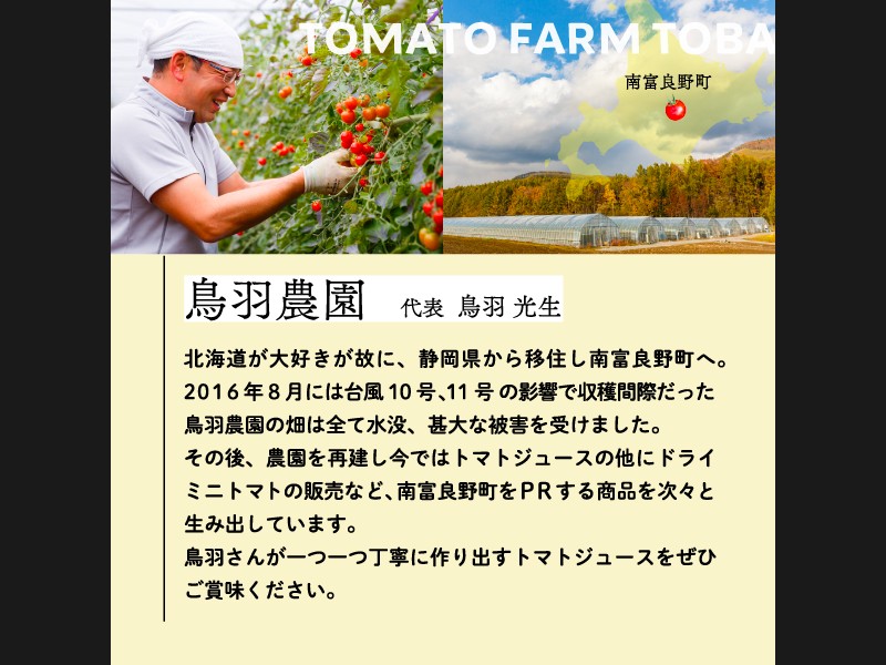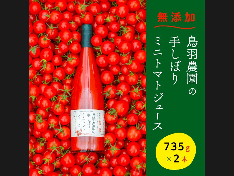 トマトジュース 北海道 手しぼり ミニトマトジュース 735g×2本 セット 鳥羽農園 ミニトマト 約120個分 ...
