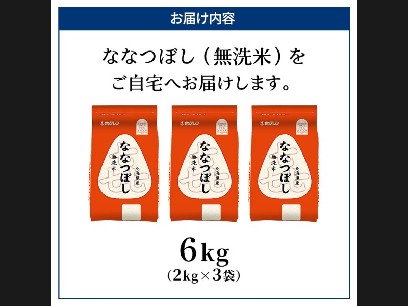 (無洗米6kg)ホクレン喜ななつぼし(無洗米2kg×3袋) 北海道米 お米 白米 ごはん ご飯 ライス 和食 炭水化...