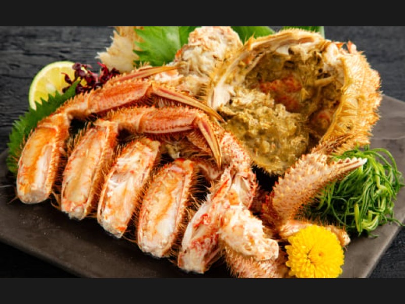 流氷がはぐくむ豊かな海で、毛ガニ・ズワイガニ・タラバガニの三大ガニのほか、ホタテ、鮭などの豊富な魚介類を味わえます。