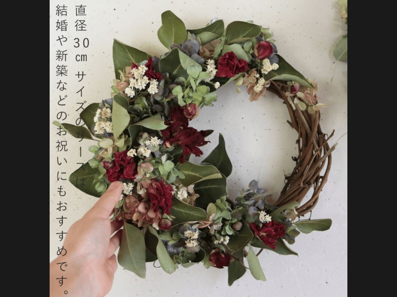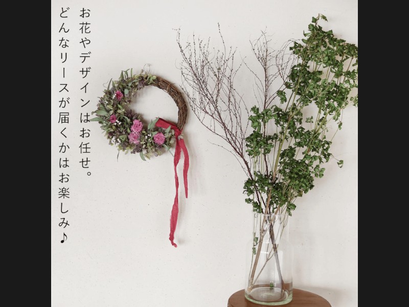 約直径30cmの大きめサイズのドライフラワーリースが届く、お任せセミオーダーリースです。