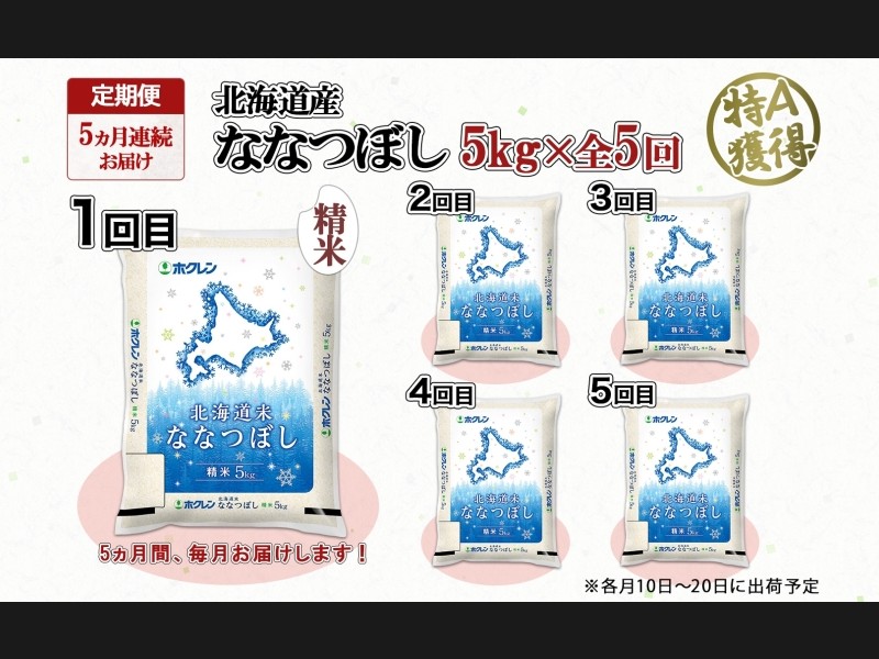 定期便 5ヵ月連続5回 北海道産 ななつぼし 精米 5kg 米 特A 白米 お取り寄せ ごはん 道産米 ブランド米 ...