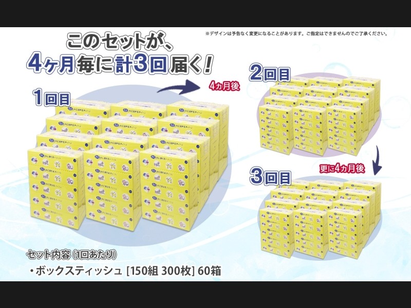 北海道 定期便 4ヵ月毎 全3回 とけまるくん 水に流せる ティッシュ 150組 計60箱 ティッシュペーパー ボ...