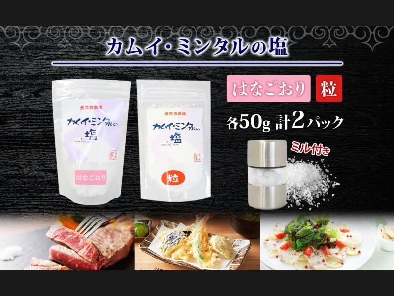 カムイミンタル はなごおり 粒 各1パック ミル付き カムイミンタル 塩 お塩 調味料 肉料理 ステーキ 酒 ...