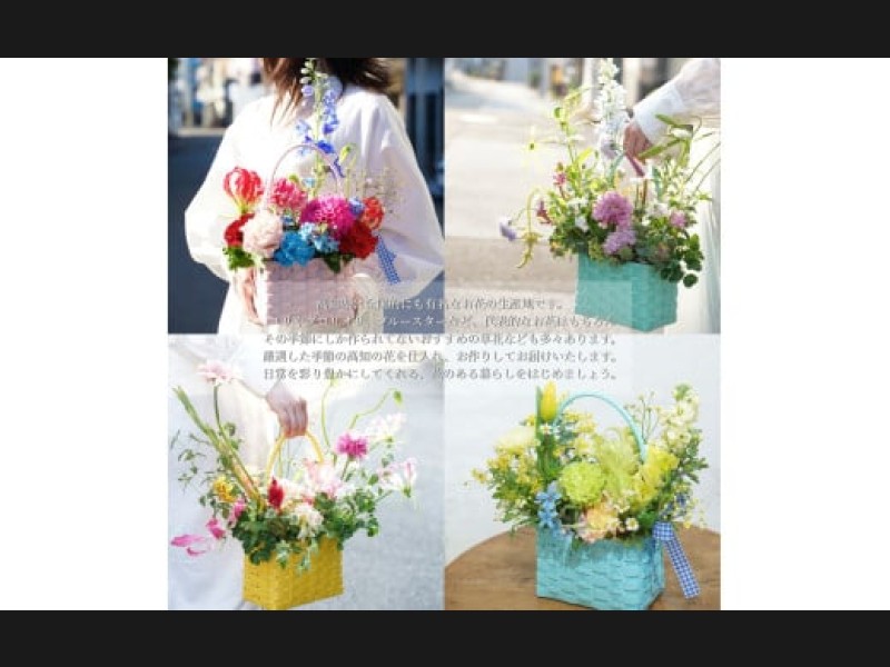 芸西村で育てられた季節感あふれる旬な生花たちを、高知の作家さん手作りの様々なカラーバスケットに入れてお届けいたします。