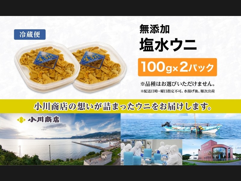 北海道 無添加塩水 ウニ 100g 2パック 1月下旬頃~3月中旬頃まで順次出荷 バフン ムラサキ うに 雲丹 海...