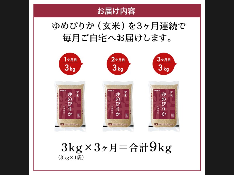 サイズ: ホクレンゆめぴりか玄米3kg(3kg×1袋)を3ヵ月間お届けいたします