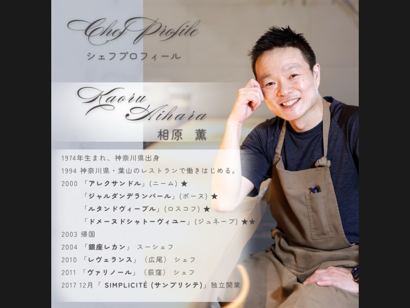 1974年、神奈川県出身。1994年より葉山のレストランで働き始める。2000年に渡仏し、星付きのレストランで修行を積む。