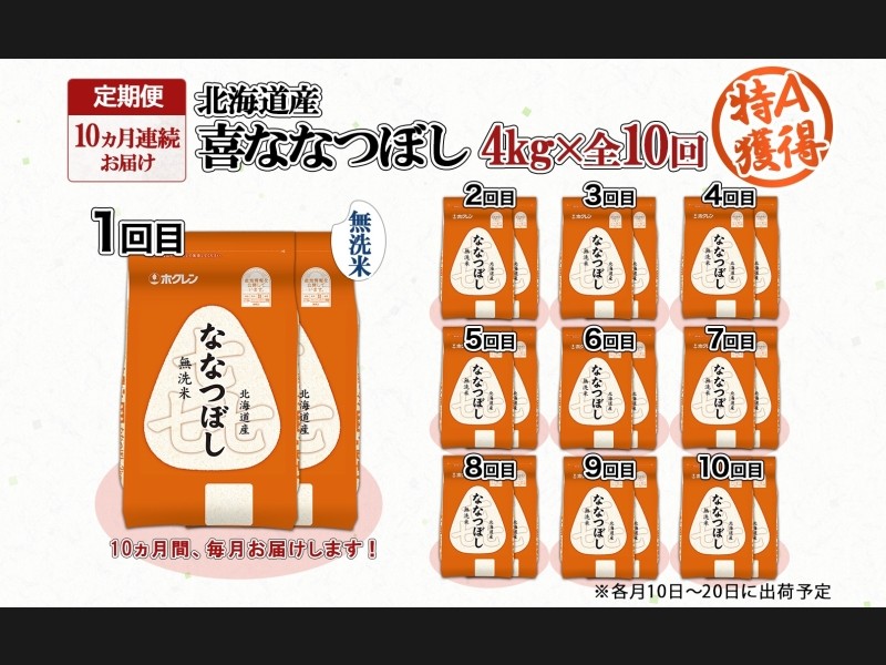 定期便 10ヵ月連続10回 北海道産 喜ななつぼし 無洗米 4kg 米 特A 白米 ななつぼし ごはん ブランド米 4...