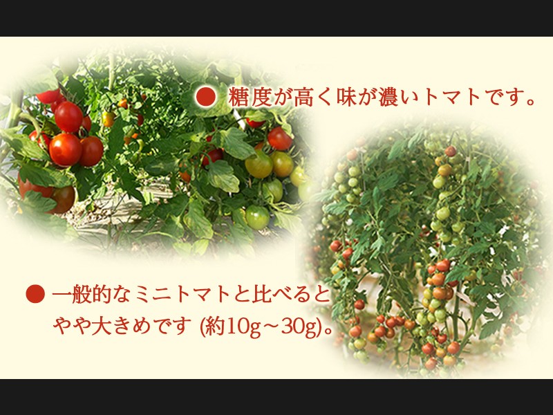 ●一般的なミニトマトと比べるとやや大きめです(約10g~30g)。