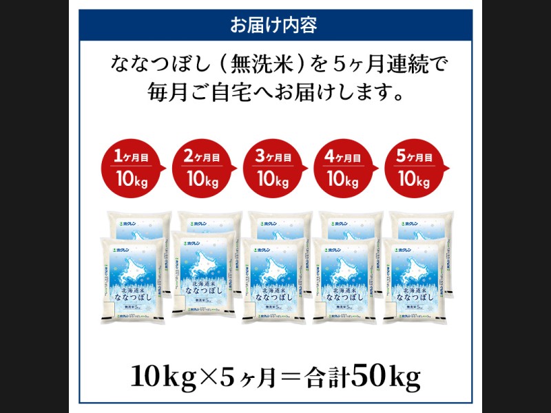 5ヵ月 定期便 ホクレン北海道ななつぼし(無洗米10kg(5kg×2袋)) お米 米 ごはん 無洗米 白米 国産 北...