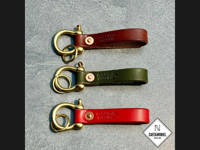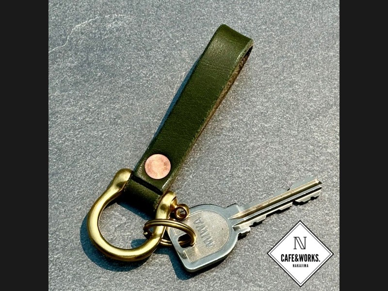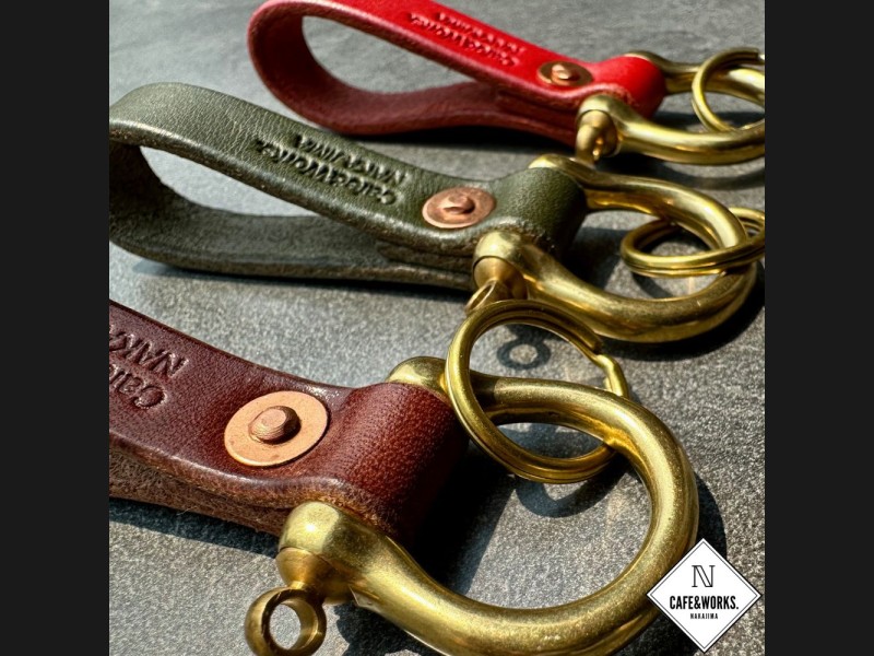 職人こだわりの革で1つ1つ丁寧に作り上げた真鍮シャックル付き本革レザーキーホルダーです。