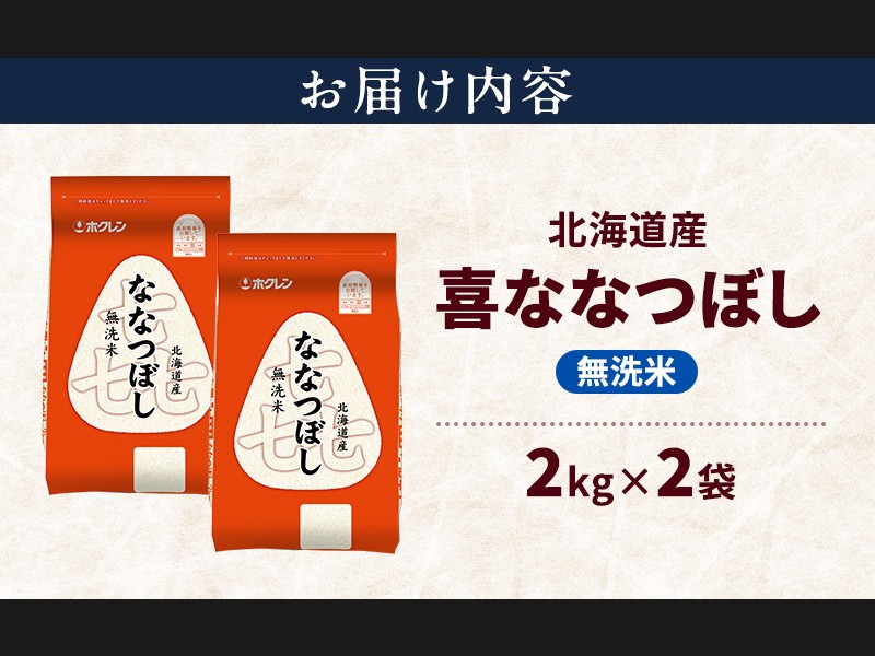 (無洗米)ホクレン喜ななつぼし4kg(2kg×2袋)をお届けします。