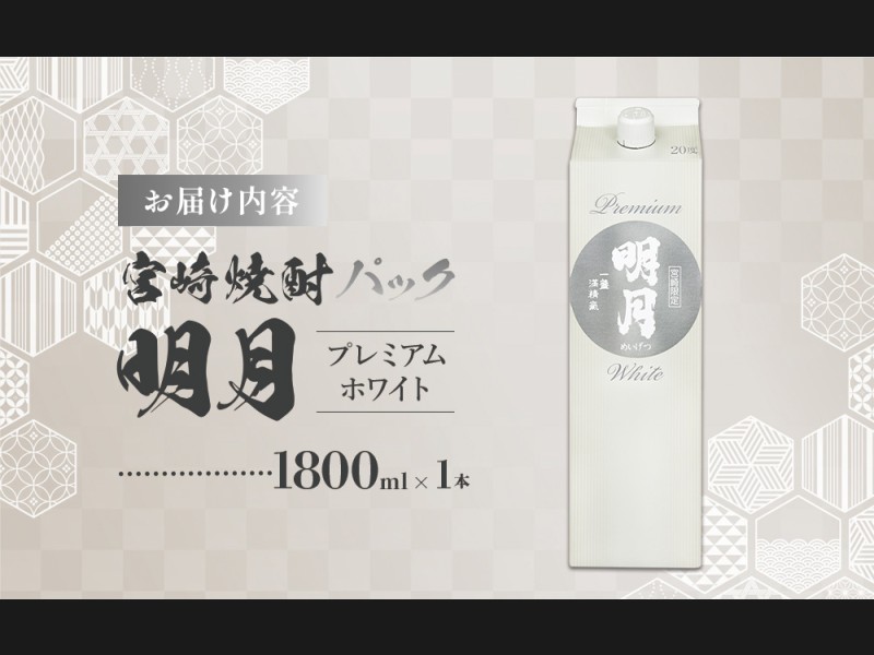 明月プレミアムホワイトパック【宮崎県内限定商品】1800ml×1本