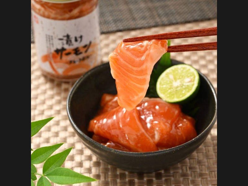 脂ののったサーモンを特製醤油タレに漬け込み、旨味豊かに仕上げました。スモーク風味が口いっぱいに広がります。