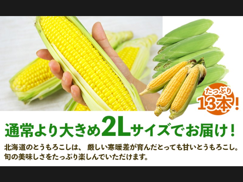 サイズ: 北海道ようてい産 イエロー種 とうもろこし 味来 2Lサイズ 計13本(5kg前後)