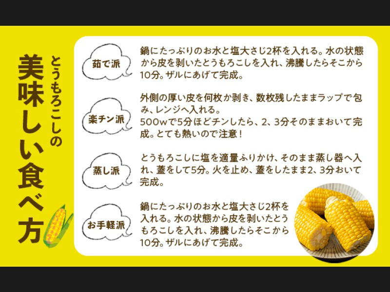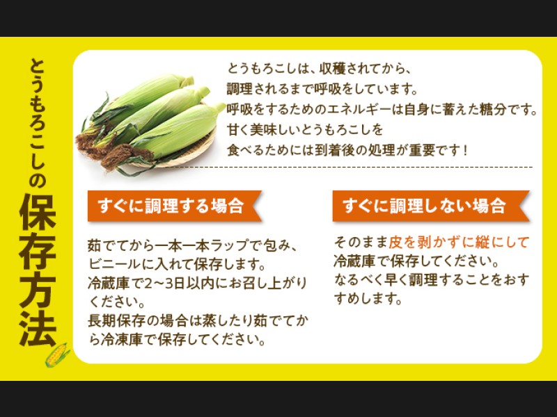 甘く美味しいとうもろこしを食べるためには、到着後の処理が重要です!
