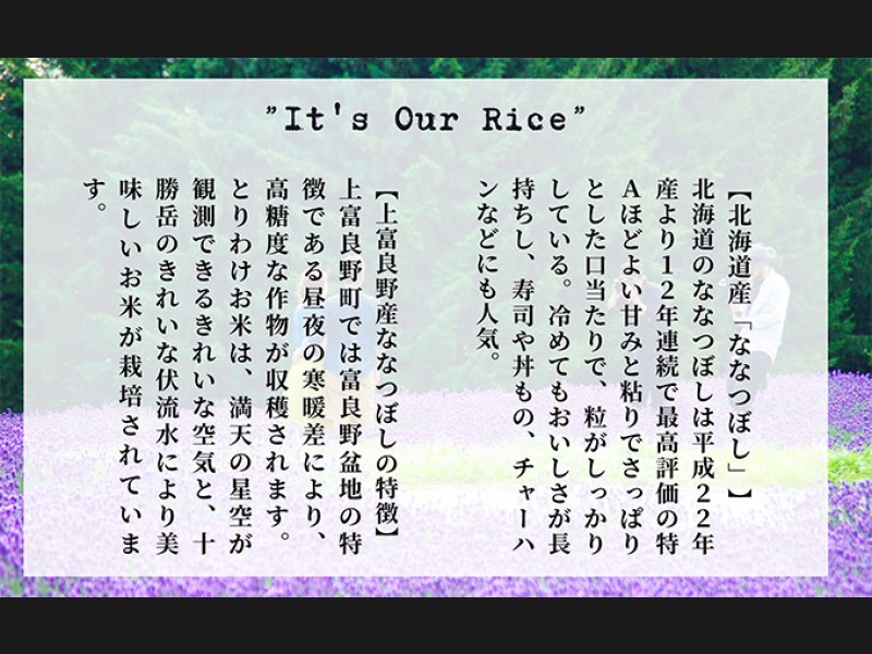 【”It's Our Rice”上富良野産ななつぼしの特徴】