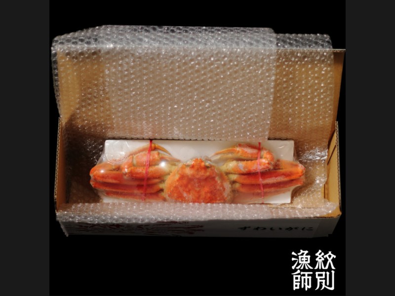 茹でたずわいがにには、甘い風味があり、柔らかい身肉というのが特徴です。≪ずわいがには、主に沖合底引き網漁法で捕獲しています。≫※甲羅の中、エラの部分に砂が混じっている場合があります。※4番目の脚(小脚)の部分がなくても市場に上場ができるため、小脚がついていないものも含まれている場合があります。