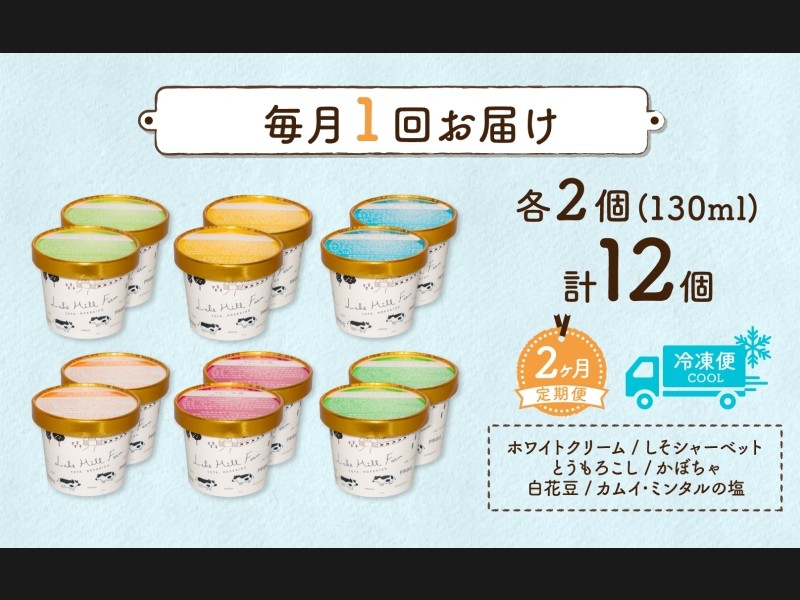 定期便 2ヵ月 連続 全2回 北海道 まきばのジェラート 6種 各2個 計12個 セット ジェラート ミルク 赤し...