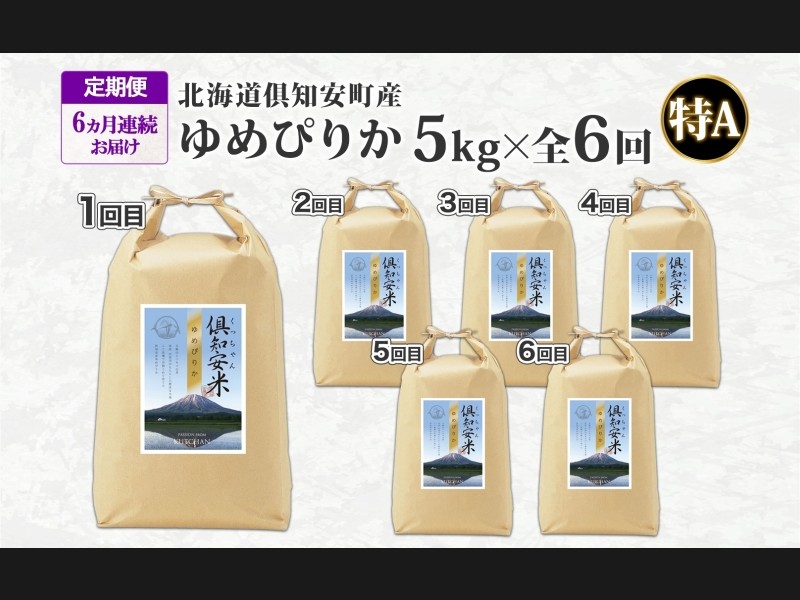 定期便 6ヵ月連続6回 北海道 倶知安町産 ゆめぴりか 精米 5kg 米 特A 白米 お米 道産米 ブランド米 契約...
