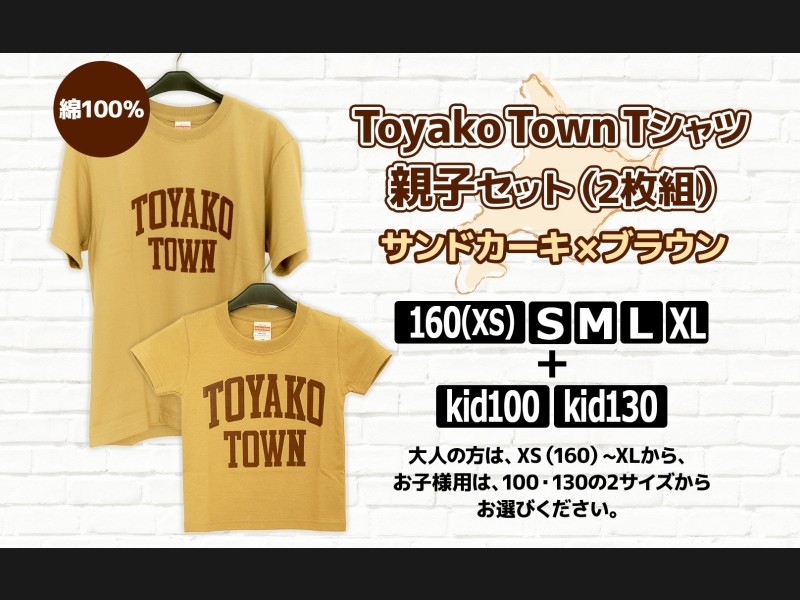 Toyako Town Tシャツ 親子 セット サンドカーキ×ブラウン 選べるサイズ kid100 kid130 子ども2種 XS(160...