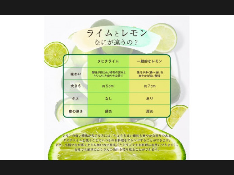 国産の本商品は、新鮮で防腐剤、ワックス不使用の安心なタヒチライムになります。