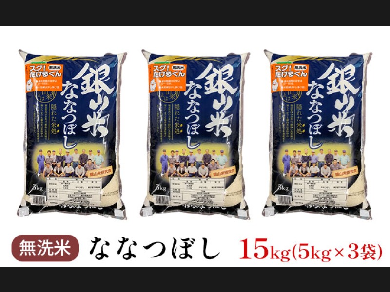 銀山米研究会の無洗米<ななつぼし>15kg(5kg×3袋) ライス 白米 精米 ブランド米 おにぎり お弁当 北...