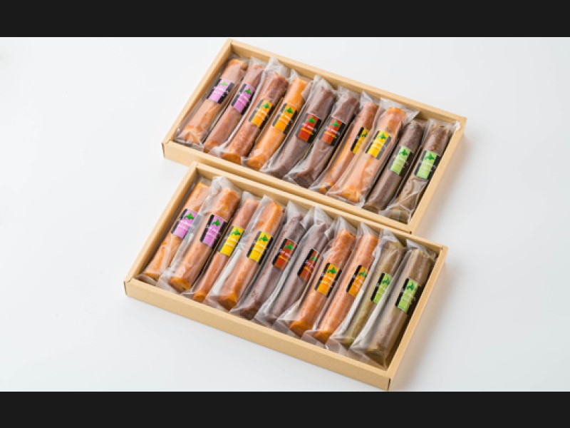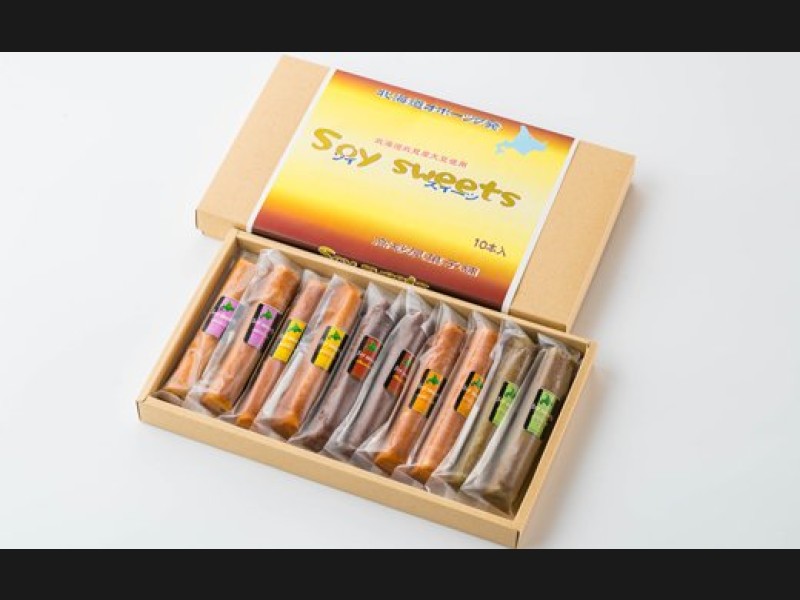 北見産大豆を使ったスティックパンケーキ「ソイスイーツ」の5種類の風味を2本ずつ10本パッケージを2箱セットにしました。