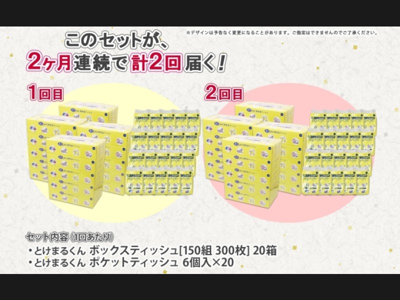定期便 2カ月連続2回 北海道産 とけまるくん ボックスティッシュ 20箱 ポケットティッシュ 120個 セット...