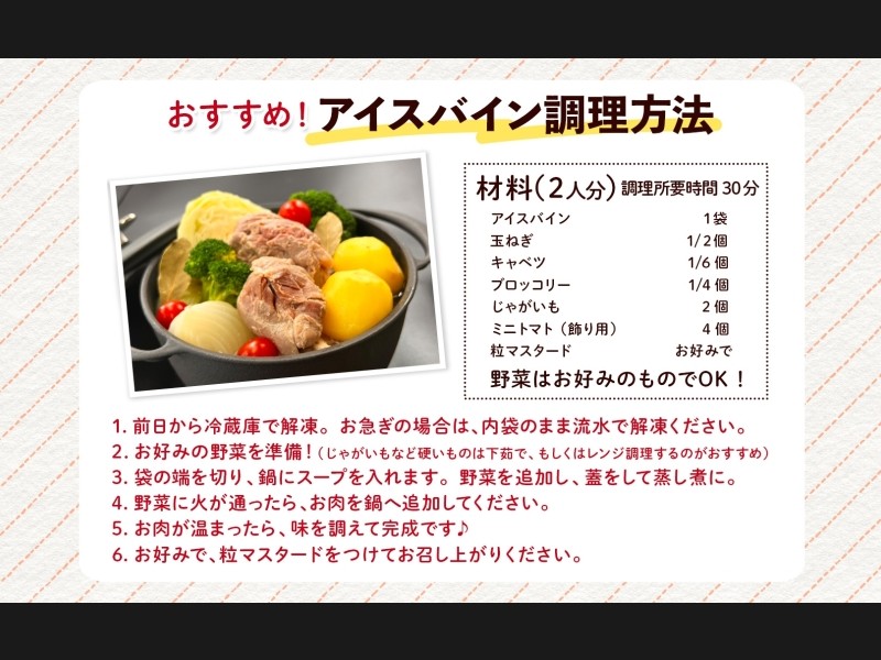 洞爺湖町からお届けするアイスバインは、このドイツの伝統の味をベースに、