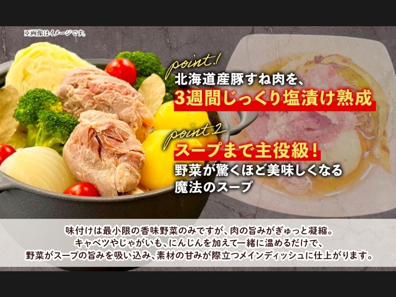 ◆北海道産豚すね肉を、3週間じっくり塩漬け熟成