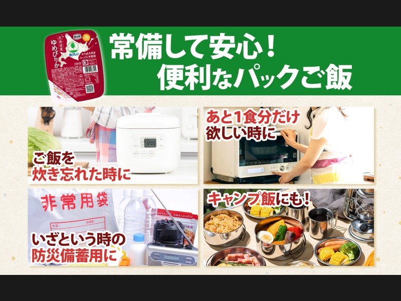 しかも、常温で長期保存(6ヵ月前後)できるので、いつでも手軽に美味しいゆめぴりかをお楽しみいただけます!