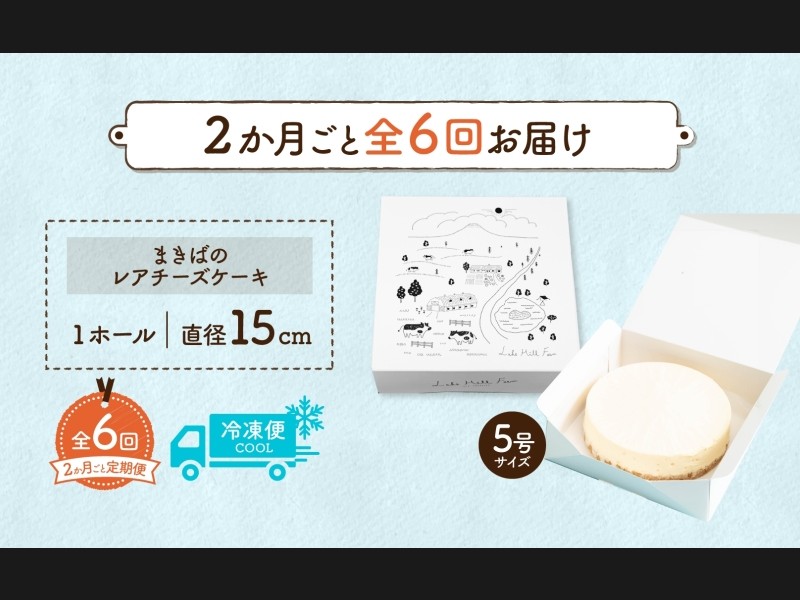 「まきばのレアチーズケーキ」1個(1ホール)を、2ヵ月毎全6回お届けします。