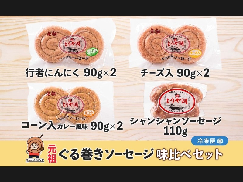 北海道 元祖ぐる巻き ソーセージ 味くらべ 計650g 豚肉 粗挽き にんにく チーズ コーン カレー シャンシ...