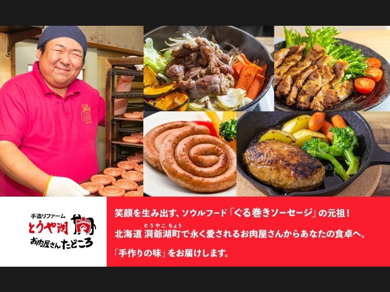 当店の看板商品ぐる巻ソーセージのセット。北海道の地場産生豚肉にこだわった本格粗挽きソーセージです。
