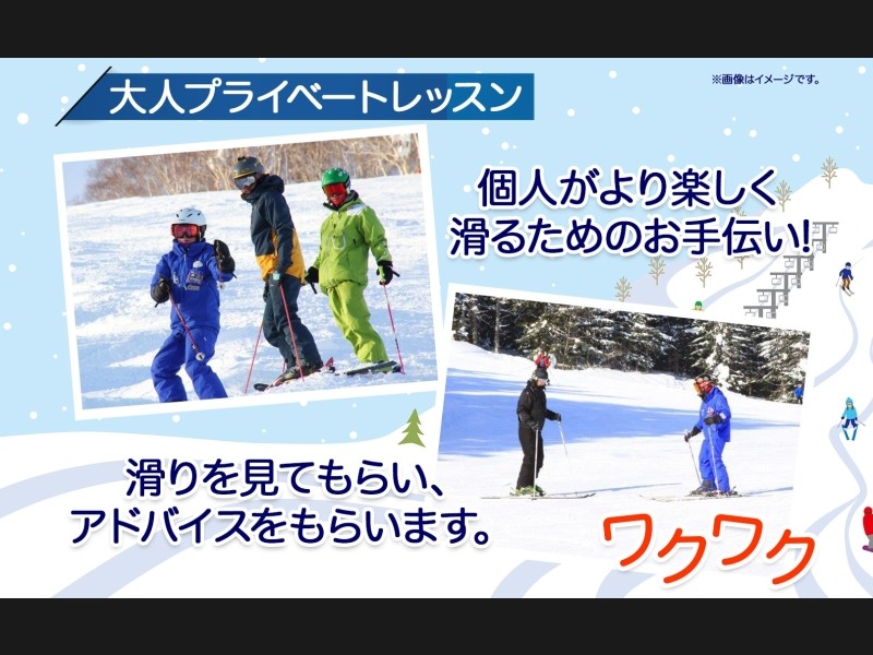 プライベートレッスンでは、インストラクターが参加者のスキーのレベルに合わせ個別指導を行います。