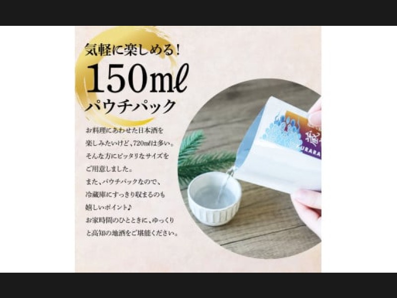高知の日本酒は長年にわたる歴史と豊かな自然、伝統的な醸造技術を背景に、独自の風味を育んでいます。現在では、淡麗で辛口な日本酒だけでなく、多種多様な銘柄が楽しまれています。その高知の酒蔵の日本酒を、気軽に楽しめるパウチパックの詰め合わせセットで、土佐しらぎく・安芸虎・豊能梅・松翁・司牡丹・無手無冠の6銘柄の純米酒が体験できます。150ミリのパウチですので、ちょうどいいサイズ。素材は米と米麹で同じですが、味は各蔵により全く違います。そこを是非とも、楽しんで飲んでいただきたいです。蔵が家にやってくるという意味合いで「蔵來」と名付けました。お家時間のひとときに、ゆっくりと地酒の魅力をご堪能下さい。