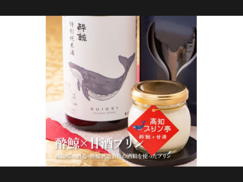 高知県の酒造「酔鯨酒造会社」さんの酒粕を使った「酔鯨×甘酒プリン」、高知県の自然をイメージしたプリンと定番プリンのセットです。・マダガスカル産の超高級天然バニラビーンズ、国産素材を使用した飲めるほどなめらかなプリン・日本酒を注いで飲んでもおいしい、高知の酒造とのコラボレーションプリン・高知の観光地でもある仁淀ブルーをイメージした青いプリン
