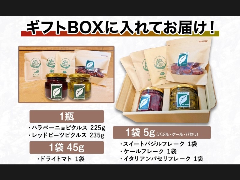 北海道 有機野菜 6種 ギフト BOX ピクルス ドライ野菜 ハラペーニョ ビーツ トマト ケール バジル イタ...