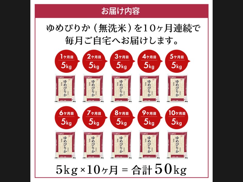 10ヵ月 定期便 ホクレンゆめぴりか(無洗米5kg)ANA機内食採用 お米 米 ごはん 無洗米 白米 国産 北海道...