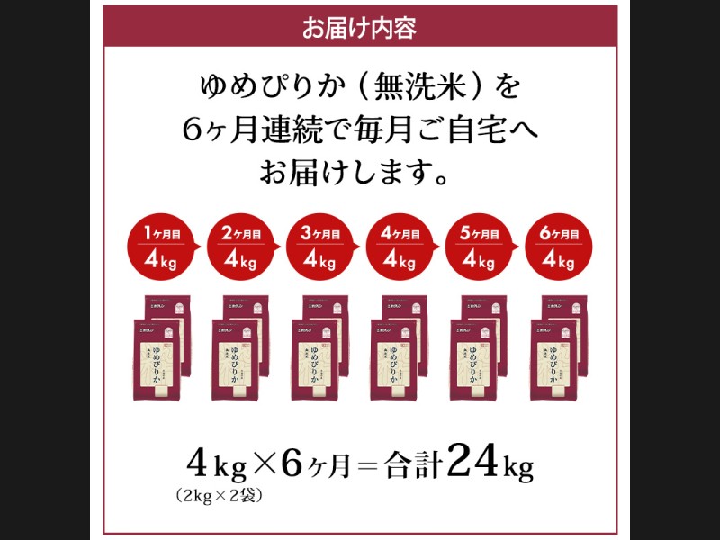 サイズ: ホクレンゆめぴりか無洗米4kg(2kg×2袋)を6ヵ月間お届けいたします