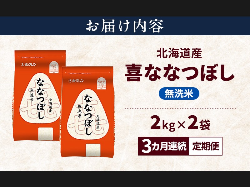 【3ヵ月連続定期便】北海道産 喜 ななつぼし 無洗米 4kg 米 特A 獲得 白米 ごはん 定期便 定期配送 3ヵ...