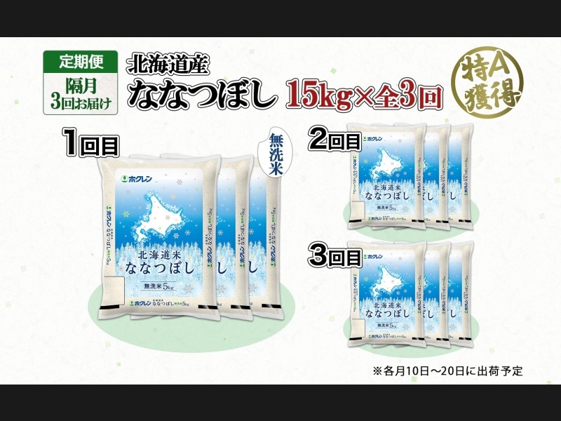 定期便 隔月3回 北海道産 ななつぼし 無洗米 15kg 米 特A 白米 お取り寄せ ごはん 15キロ 5kg ×3袋 道産...