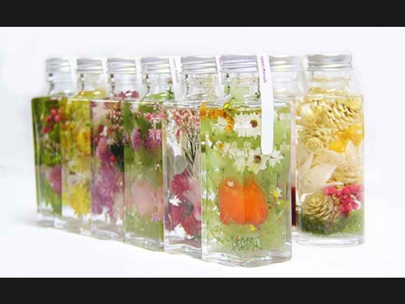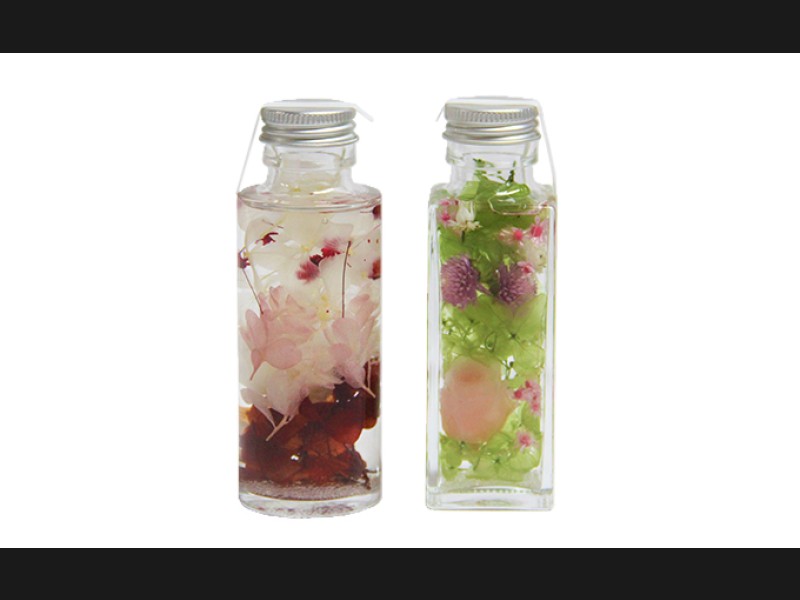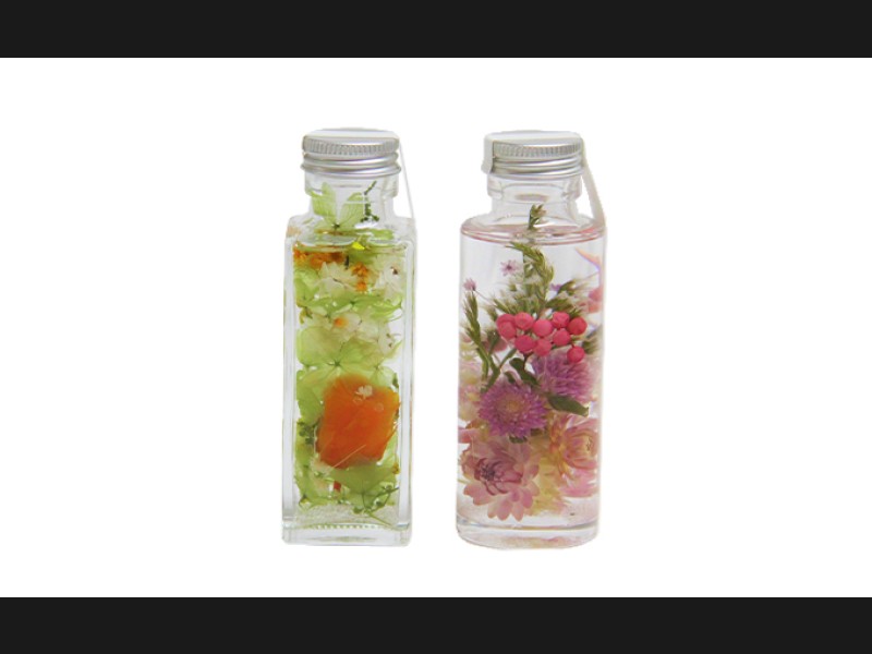 ※ハーバリウムのオイルは引火点300℃以上で燃えにくい科学的安定性の高いシリコンオイルですが、可燃性の液体ですのでストーブやガスコンロのそばには置かないでください。